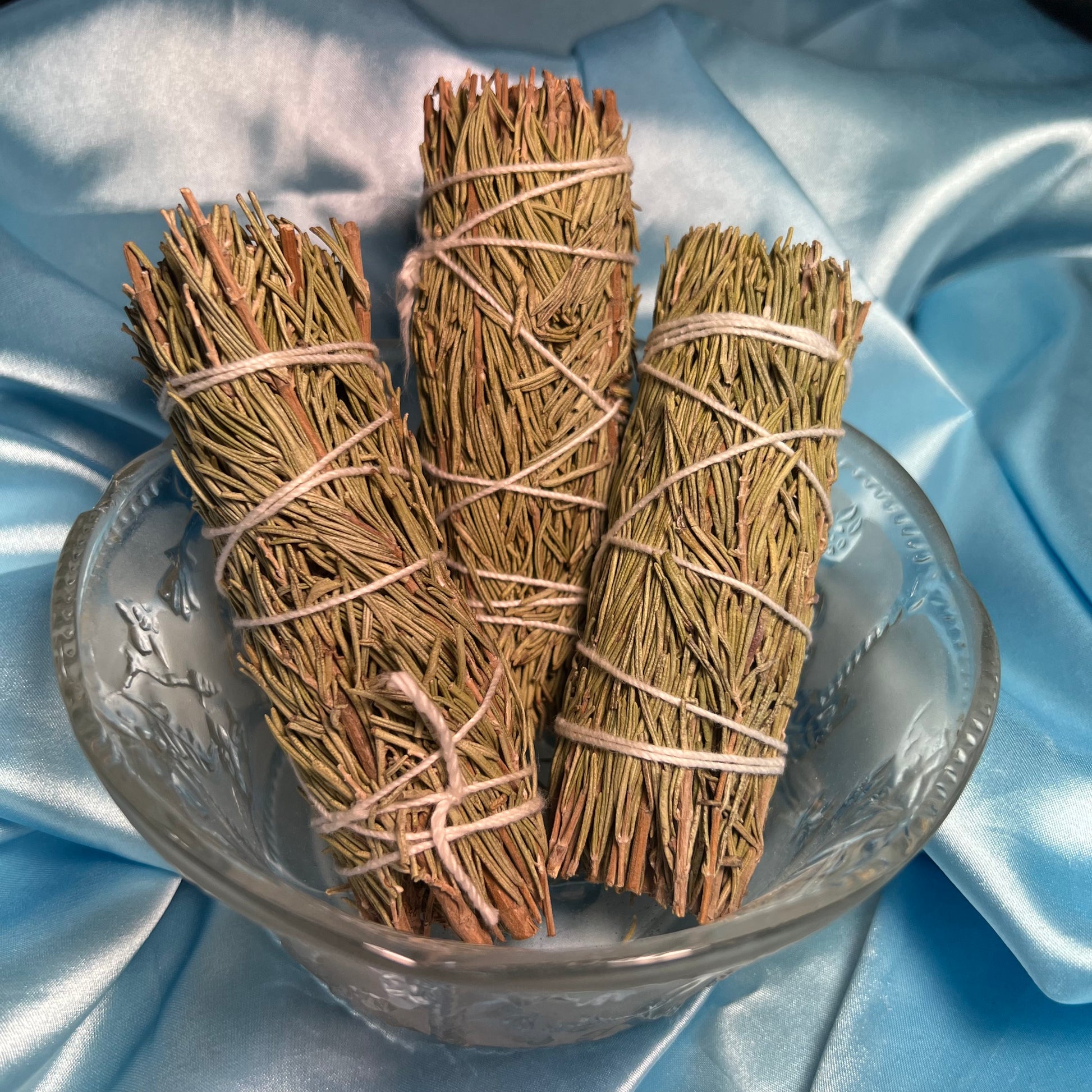The Rosemary Smudge Sticks are 4" to 4.5" long is wild-crafted and each bundle is hand tied.