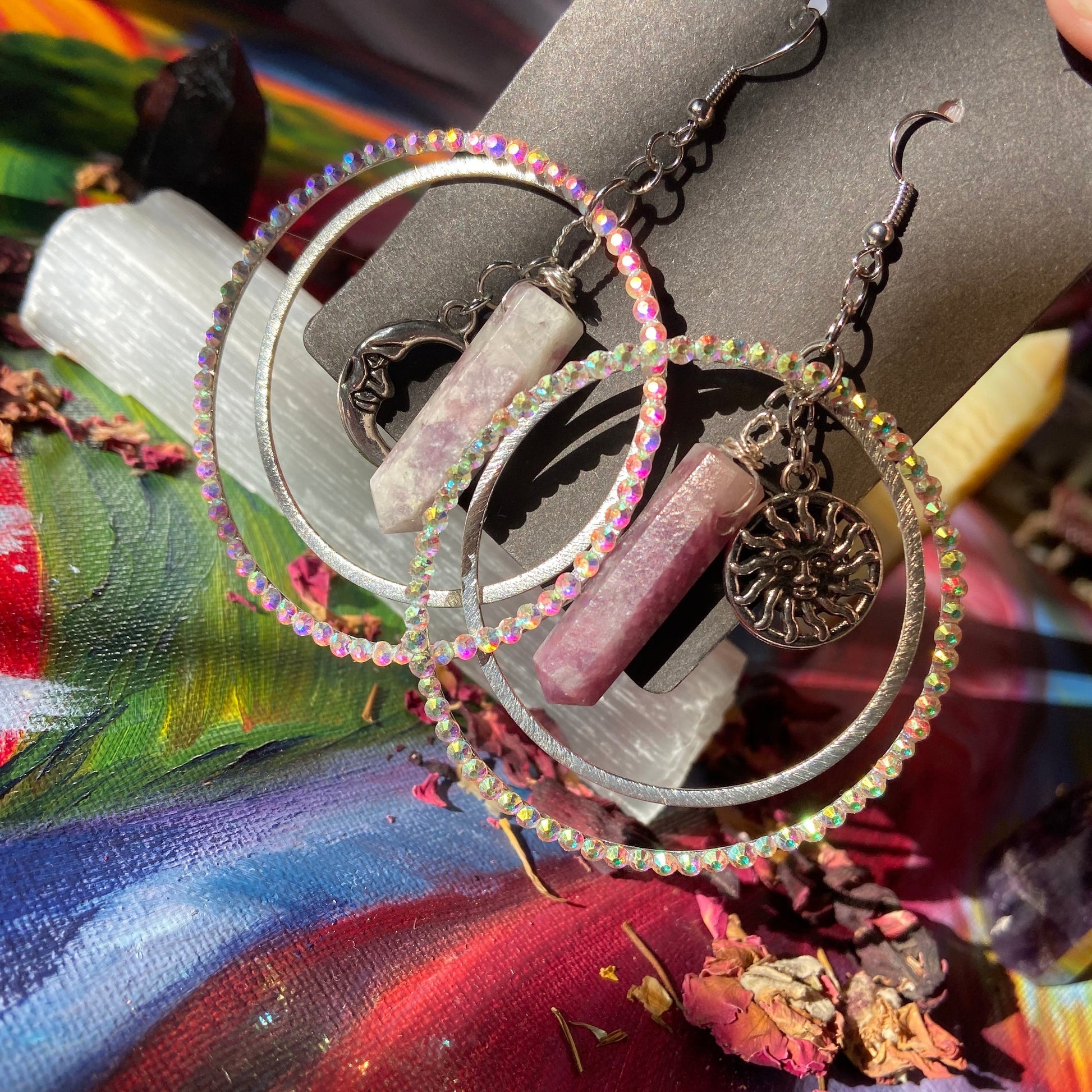 Sun and Moon Lepidolite Earrings